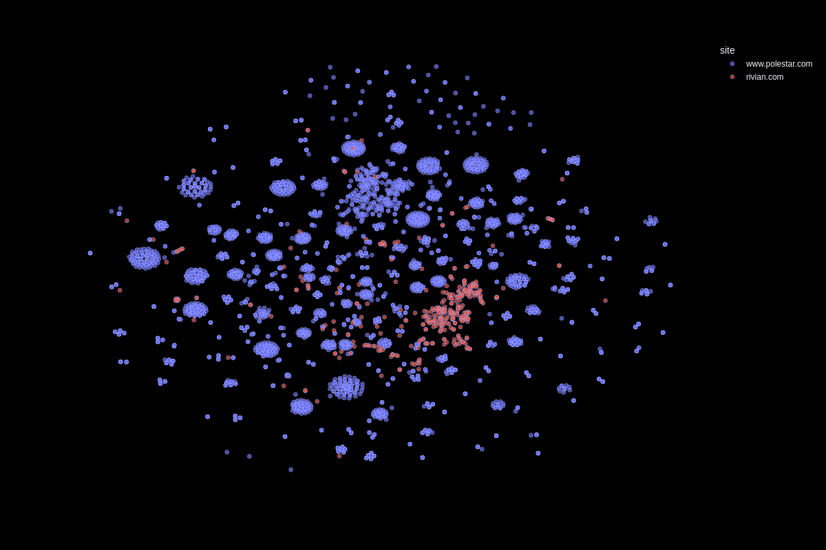 Small groups of content (semantic clusters) can be observed The themes covered by Polestar are much more numerous.