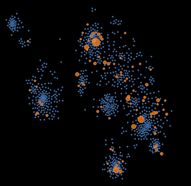 These maps are interactive: by hovering over each point, you can visualize: a title, a url, etc.