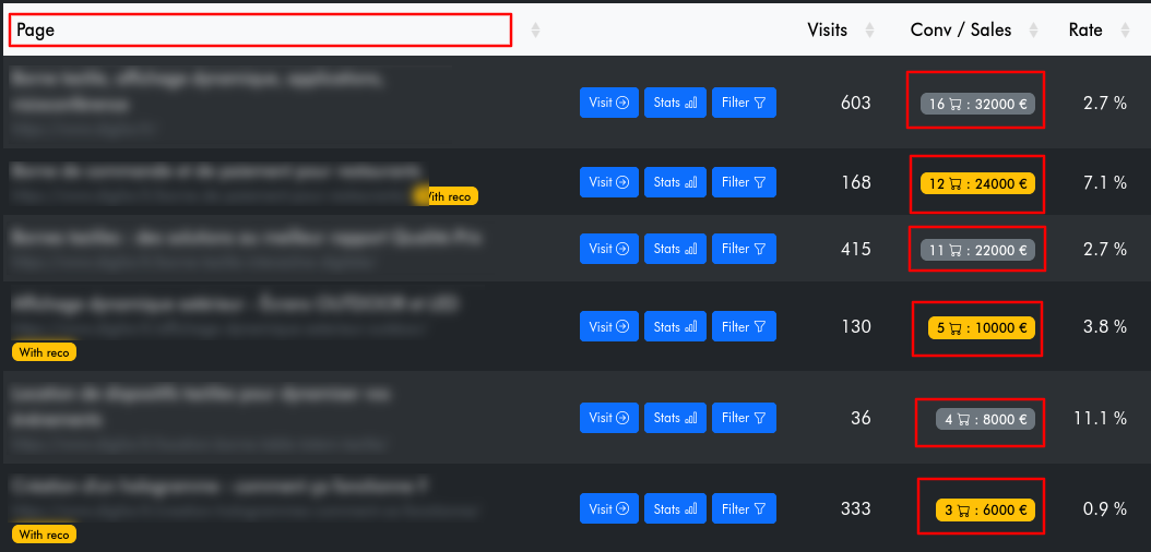SEOCopilot : Extrait des contenus (pages) qui génèrent des ventes