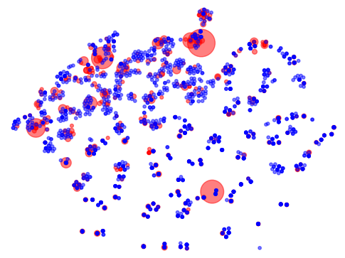 Carte sémantique d'un e-commerce : seulement 20% du contenu (en rouge) a permis de générer au moins une vente.