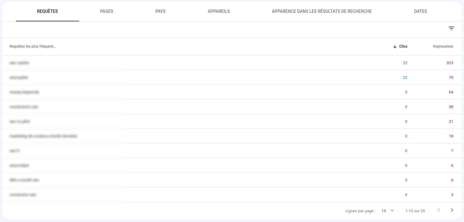 Je décide de rédiger un article sur tel sujet car les données de la Google Search Console m’indiquent que ce sujet est :